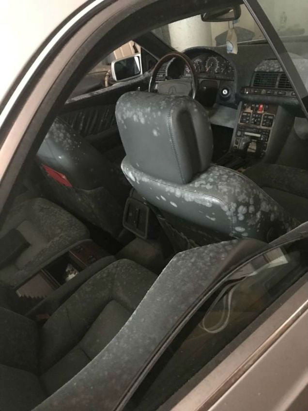 Όλη η καμπίνα των επιβατών είναι καλυμμένη από μούχλα. Τα πάντα, από τα καθίσματα και τις επενδύσεις των θυρών μέχρι τον ουρανό και το ταμπλό, είναι στα πρόθυρα του σαπίσματος. Δεν δίδεται κάποια εξήγηση στην αγγελία, όμως κατά πάσα πιθανότητα κάποια πλημμύρα έφερε την δύσμοιρη Mercedes σε αυτή την κατάσταση. Ακόμα κι έτσι, όμως, τα δίνατε αν υπήρχαν (και μπορούσατε να επωμιστείτε το κόστος συντήρησης);