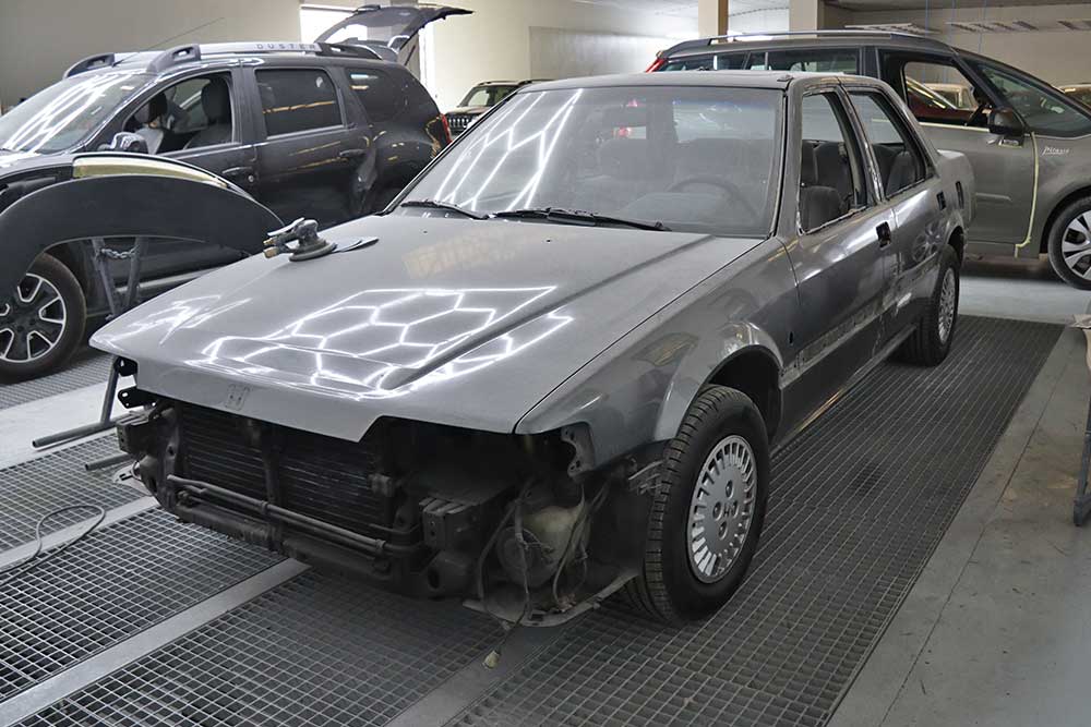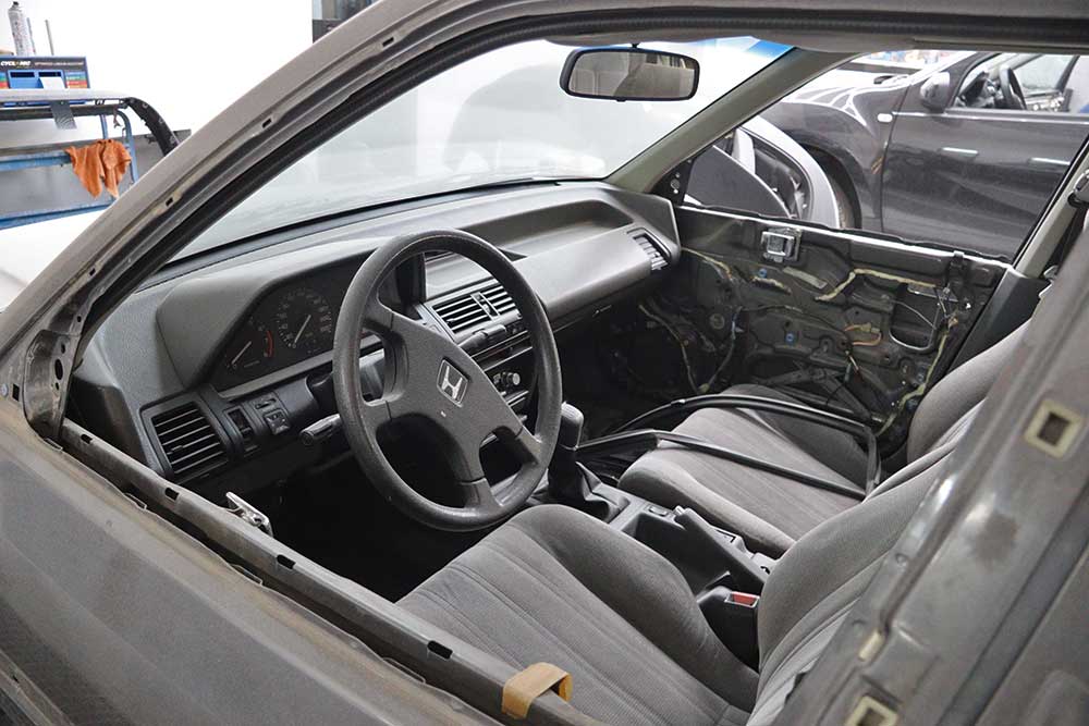 Αυτή τη φορά λοιπόν ετοιμάζουμε μια ξεχωριστή δοκιμή, ενός αυτοκινήτου που είχε κάποια μοναδικά χαρακτηριστικά για την εποχή του -και όχι μόνο. Πρόκειται για ένα απολύτως λειτουργικό και πλήρως εργοστασιακό, Honda Accord 1.6 του 1988, με 201.000 χλμ. Στην παρούσα φάση βρίσκεται στο νέο και υπερσύγχρονο φανοποιείο της εταιρείας Mr. France και προετοιμάζεται για ολική βαφή, προκειμένου να λάμψει ξανά το σφηνοειδές του αμάξωμα, με το χαρακτηριστικό χαμηλό ρύγχος εμπρός και το ψηλό πίσω καπό.