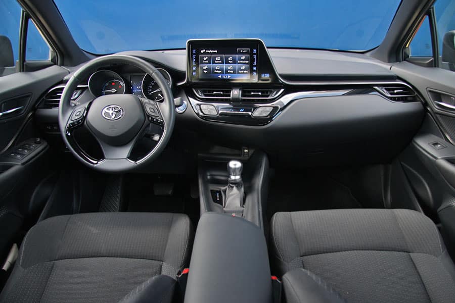 Στα θετικά στοιχεία του C-HR ανήκει και η προσεγμένη ποιότητα κατασκευής και τα μαλακά υλικά στο ταμπλό. Κυρίαρχο στοιχείο αποτελεί η στάνταρ οθόνη αφής των 8 ιντσών που βρίσκεται ψηλά στην κεντρική κονσόλα και από εκεί γίνεται ο έλεγχος διαφόρων λειτουργιών του αυτοκινήτου. Από πλευράς χώρων, τέσσερα άτομα θα μετακινηθούν χωρίς να στριμωχτούν, όμως οι πίσω επιβάτες θα αισθανθούν κλειστοφοβικά λόγω των πολύ μικρών παραθύρων. Για τις αποσκευές τα 377 λίτρα είναι λίγα για τα στάνταρ της κατηγορίας, δεδομένου ότι μικρότερα SUV έχουν μεγαλύτερο πορτ μπαγκάζ.