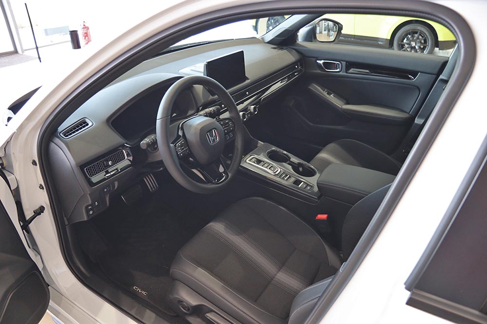 Εντελώς νέο είναι και το εσωτερικό του, όπου προβάλλει και αυτό μια πιο σικ και πολυτελή εικόνα, υιοθετώντας πολλές ευθείες γραμμές, επίπεδες επιφάνειες και απαλές καμπύλες. Στο κέντρο του ταμπλό κυριαρχεί η οθόνη του infotainment των 9 ιντσών, ενώ για πρώτη φορά σε Civic τοποθετείται ψηφιακός πίνακας οργάνων 10,2 ιντσών. Ο παρατηρητής αμέσως αντιλαμβάνεται και την προσοχή έχει δοθεί στην ποιότητα κατασκευής, μέσω των μαλακών πλαστικών και της στιβαρής συναρμογής. Επίσης, το εσωτερικό του νέου Civic είναι ευρύχωρο, όπως και το πορτ μπαγκάζ των 410 λίτρων.