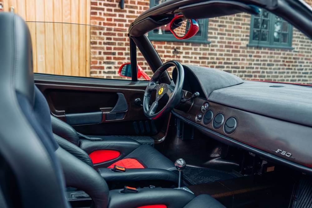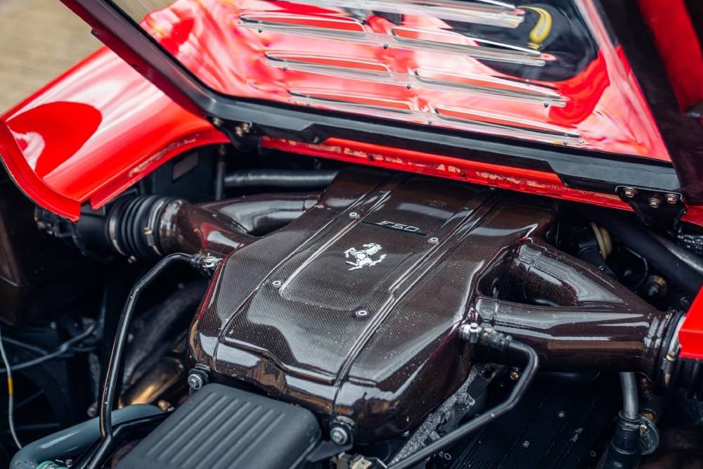 Το οδόμετρο αναγράφει σχετικά πολλά χιλιόμετρα για F50, καθότι αγγίζει τις 1.900 χλμ. (1.847). Στα μηχανικά μέρη τώρα, αντίθετα με το αμάξωμα και το εσωτερικό, η κατάσταση είναι ίδια με των αυτοκινήτων που βγήκαν από το Μαρανέλο. Ο Tipo F310B ατμοσφαιρικός V12 των 4.698 κ.εκ. αποδίδει 520 ίππους στις 8.500 σ.α.λ. και 471 Nm στις 6.500 σ.α.λ., «ανάβοντας» τα 335/30/R18 πίσω ελαστικά μέσω 6τάχυτου χειροκίνητο κιβωτίου και μπλοκέ διαφορικού. Τα πρώτα 100 χλμ./ώρα έρχονται μετά από 3,7 δλ. και η τελική ανέρχεται στα 325 χλμ./ώρα, επιδόσεις που αναμφίβολα μπορεί να επαναλάβει σήμερα, 27 χρόνια μετά τα πρώτα της χιλιόμετρα. Πόσο κοστολογούνται όλα αυτά;