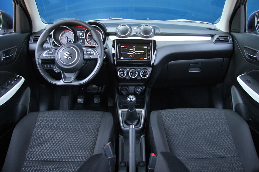 Πολύ συμφέρουσα επιλογή ως αγορά είναι η δεύτερη έκδοση GL+ (13.480 ευρώ) με εξοπλισμό που περιλαμβάνει τα πάντα: 6 αερόσακους, ηλεκτρικά παράθυρα εμπρός, ηλεκτρικούς και θερμαινόμενους καθρέπτες, air condition, προβολείς ομίχλης, ζάντες αλουμινίου 16 ιντσών, οθόνη αφής 7 ιντσών, κάμερα οπισθοπορείας, αυτόματη λειτουργία φώτων και θερμαινόμενα εμπρός καθίσματα. Επιπλέον, το Suzuki Swift Hybrid διατίθεται και με σύστημα τετρακίνησης ALLGRIP AUTO, σε τιμές που ξεκινούν από 14.780 ευρώ στην έκδοση GL+.