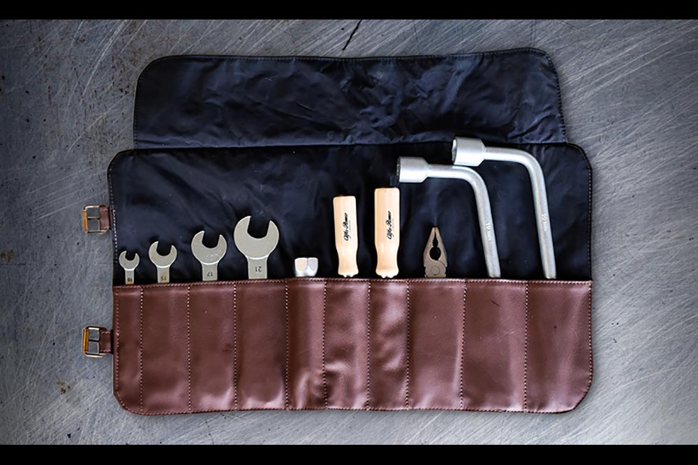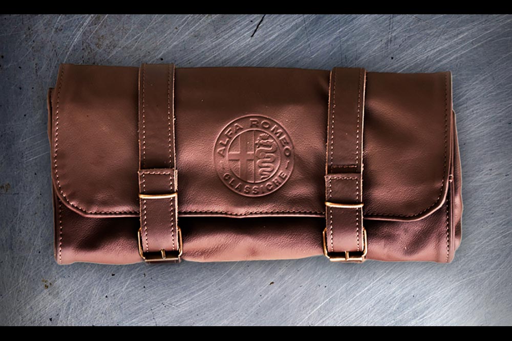 Γνωστή για τη μοναδική αίσθηση στιλ και φινέτσας σε κάθε έκφραση της, η Alfa Romeo, δεν θα μπορούσε παρά να ντύσει το συλλεκτικό κιτ εργαλείων με μια εξίσου κομψή θήκη. Τα 10 εργαλεία του κιτ φιλοξενούνται σε μια δερμάτινη θήκη με κλασσικό στιλ και το λογότυπο της Alfa Romeo Classiche.