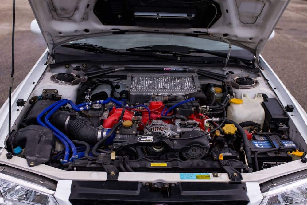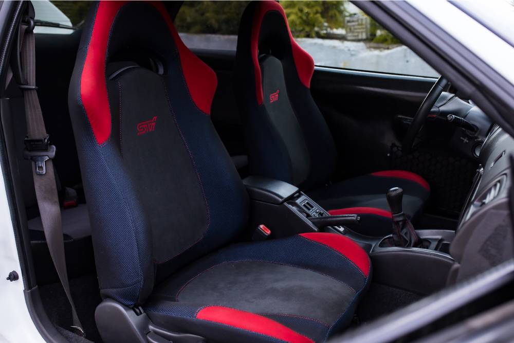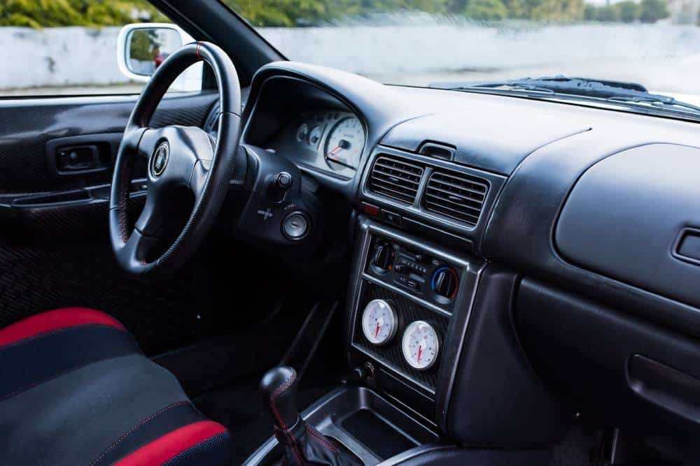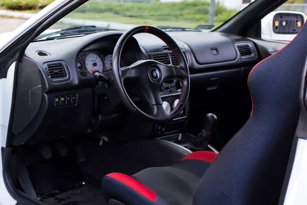 Στο εσωτερικό δεσπόζουν τα μπάκετ της Recaro και το τιμόνι Nardi, όπως και τα aftermarket οργανάκια χαμηλά στο ταμπλό. Όπως βλέπουμε το τιμόνι έχει μετακομίσει στα αριστερά, κατόπιν της ανάλογης μετατροπής που -σύμφωνα με την αγγελία- έχει γίνει σε εξουσιοδοτημένο συνεργείο της Subaru. Το ίδιο ισχύει για όλες τις εργασίες πάνω στο αυτοκίνητο, που περιλαμβάνουν rebuild στον κινητήρα, νέο 5άρι χειροκίνητο κιβώτιο και ανάρτηση, όλα αυθεντικά από τη Subaru Tecnica International.