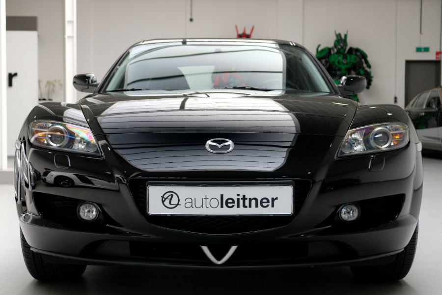 Μας έρχεται από το 2004 και την Ολλανδία, όντας αυτοκίνητο από τις πρώτες παρτίδες της Mazda. Ο ιδιοκτήτης το έχει συντηρήσει σε επίπεδο ψυχαναγκασμού, αντιμετωπίζοντάς το περισσότερο ως στολίδι παρά ως πισωκίνητο κουπέ, με μπλοκέ διαφορικό και πάνω από 230 ίππους. Μέσα σε 16 χρόνια έχει διανύσει μόλις 51.001 χλμ., με το ένα αυτό χιλιόμετρο να γίνεται εσκεμμένα ώστε να ξεπεραστεί το φράγμα των 51.000 χλμ! Καταλαβαίνουμε, λοιπόν, πως έχουμε να κάνουμε με ιδιάζουσα περίπτωση «ψείρα», που έχει διατηρήσει το μαύρο RX-8 σε κατάσταση βιτρίνας.