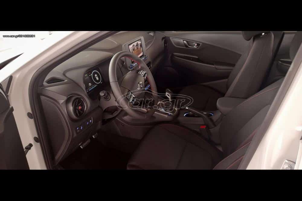 Τη δυναμική του εμφάνιση εξωτερικά τονίζουν πολλά ξεχωριστά στοιχεία (σε σχέση με τις απλές εκδόσεις του Kona). Οι διαφορετικού σχεδιασμού σπορ προφυλακτήρες και μάσκα, οι διευρυμένοι αεραγωγοί, οι ποδιές στα μαρσπιέ, τα σπόιλερ, ο διαχύτης, η διπλή απόληξη της εξάτμισης και οι 18άρες ζάντες, αποτελούν ειδοποιές διαφορές. Σπορ είναι και το εσωτερικό του Kona N Line, με τις μαύρες επενδύσεις και τις κόκκινες ραφές, τα μεταλλικά πεντάλ και το λογότυπο N στο τιμόνι και στο λεβιέ ταχυτήτων. Φουλ είναι και από πλευράς εξοπλισμού, αφού διαθέτει -μεταξύ άλλων- 6 αερόσακους, αυτόνομη πέδηση, διατήρηση λωρίδας, ψηφιακό πίνακα οργάνων 10,25 ιντσών, οθόνη αφής 8 ιντσών, αυτόματο κλιματισμό, κάμερα οπισθοπορείας, φώτα LED και πάρα πολλά ακόμη.