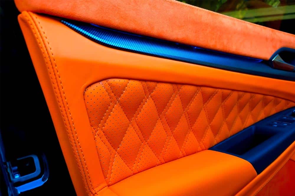 Γιατί όμως αυτό το Golf R Black Edition είναι τόσο ακριβό; Σύμφωνα με τον πωλητή του είναι το πρώτο τέτοιο μοντέλο με εσωτερικό που είναι πλήρως ντυμένο στο χέρι με δέρμα αλκαντάρα και νάπα, από την οροφή, το ταμπλό, τα πάνελ των θυρών, τα καθίσματα και τα πατάκια, έως κάθε επιφάνεια του πορτ μπαγκάζ. Αναμφίβολα είναι μοναδικό, όμως τα λεφτά που ζητούνται είναι πολλά και το χρώμα που επιλέχθηκε για το ντύσιμο του εσωτερικού είναι κάπως εκκεντρικό, αλλά ταιριάζει με το έντονο κοντράστ που κάνει με το μαύρο αμάξωμα.