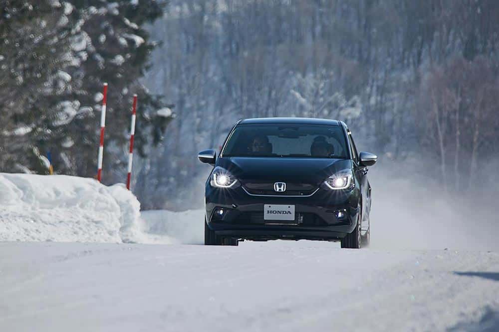 Αρκετά πιο μακριά από την Ευρώπη και συγκεκριμένα στην Ιαπωνία, το νέο Jazz e:HEV πωλείται και με τετρακίνηση. Το υβριδικό σύστημα συνεργάζεται με συνεκτικό πολύδισκο συμπλέκτη (Viscous), μεταφέροντας ροπή και στον πίσω άξονα, όταν οι εμπρός αρχίσουν να χάνουν πρόσφυση. Έτσι επιτυγχάνεται ομαλή επιτάχυνση σε ολισθηρές συνθήκες, όχι μόνο κατά την επιτάχυνση, αλλά κατά την κίνηση και σε διαδρομές με στροφές.