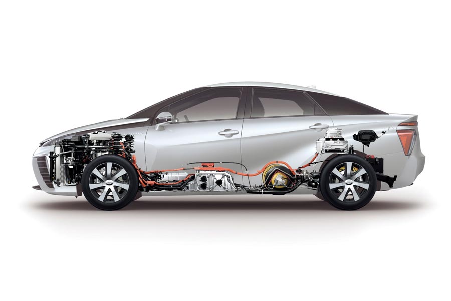 Το Mirai υιοθετεί το σύστημα Toyota Fuel Cell (TFCS), ένα συνδυασμό κυψελών καυσίμου και υβριδικής τεχνολογίας. Χρησιμοποιώντας υδρογόνο για παραγωγή ενέργειας δεν εκπέμπει καθόλου καυσαέρια, παρά μόνο νερό. Ο ηλεκτροκινητήρας αποδίδει 154 ίππους και 335 Nm ροπής, ενώ οι δύο δεξαμενές πλήρωσης του υδρογόνου σε πίεση 700 bar έχουν συνολική χωρητικότητα 122,4 λίτρα.
