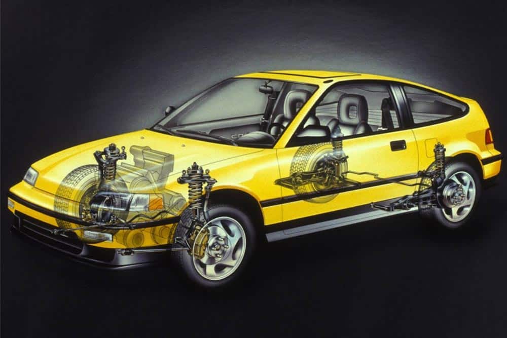 Πιο συγκεκριμένα μπροστά τοποθετούνταν διπλά ψαλίδια και όχι η κλασική δομή με τα γόνατα ΜακΦέρσον που έχει κυριαρχήσει. Για την επιλογή αυτή καταλυτική ήταν η συνεισφορά του αείμνηστου Ayrton Senna στην εξέλιξη του θρυλικού NSX, αφού ο Βραζιλιάνος πιλότος της F1 ασχολήθηκε με το στήσιμο του σπορ Honda, το οποίο εφοδιάζονταν με διπλά ψαλίδα και στους τέσσερις τροχούς. Στον πίσω άξονα του Civic 4ης γενιάς τοποθετούνταν μια δομή τύπου πολλαπλών συνδέσμων με βραχίονες, όταν ο ανταγωνισμός πατούσε σε πολύ πιο απλές και λιγότερο αποτελεσματικές λύσεις με ημιάκαμπτους ή ακόμα χειρότερα με άκαμπτους άξονες. Επίσης, στα τέλη του 1989 έκανε την πρώτη εμφάνισή του στο Civic και ο VTEC κινητήρας των 1.6 λτ. με την εντυπωσιακή απόδοση των 160 ίππων.