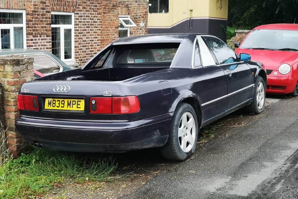 Τότε πόθεν προέκυψε το μοναδικό θέαμα που βλέπουμε στις φωτογραφίες; Tα εύσημα ανήκουν σε έναν Βρετανό και την ανάγκη για επαγγελματικό όχημα, που τον έκανε να αρχίσει τους πειραματισμούς με την ναυαρχίδα του Ίνγκολσταντ. Ο φίλος μας, που λέτε, είχε ένα αγροτικό για την δουλειά του και το A8 1ης γενιάς (του 1994 συγκεκριμένα) για τις μετακινήσεις του. Όταν αναγκάστηκε να πουλήσει το πρώτο, οι λύσεις ήταν δύο: να πάρει καινούργιο pick up ή να μετατρέψει το A8 σε τέτοιο. Προφανώς η δεύτερη επιλογή ήταν η κατεξοχήν δύσκολη, ειδικά από την στιγμή που αμάξωμα και πλαίσιο είναι κατασκευασμένα από αλουμίνιο.
