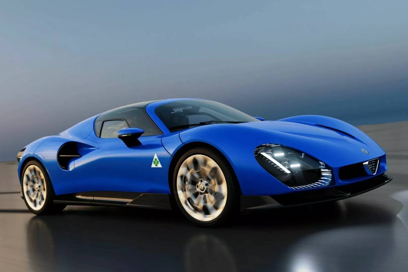 H Alfa Romeo 33 Stradale έκανε ντεμπούτο στο φλογερό Rosso Alfa, κατακόκκινη, αθεράπευτα ρομαντική και ακαταμάχητα γοητευτική. Το ιταλικό υπεραυτοκίνητο, ωστόσο, δείχνει μαγευτικό κι όταν φοράει το βαθύ μπλε Blue Reale.