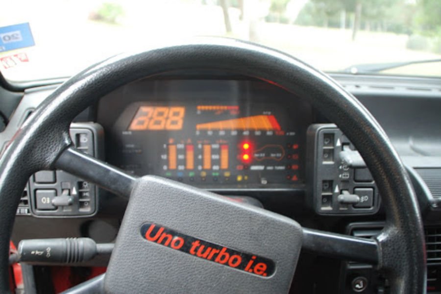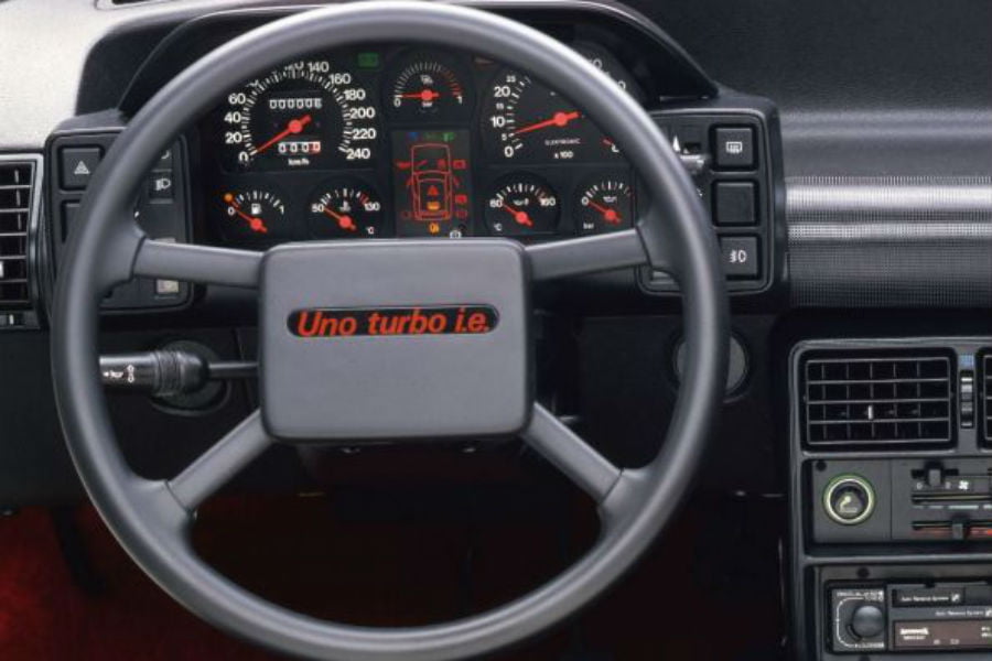 Στο εσωτερικό οι διαφορές ήταν λιγότερο εμφανείς, με την πλέον χαρακτηριστική να είναι το τιμόνι που επίσης ανέγραφε «Uno Turbo i.e.». O πίνακας οργάνων ήταν επίσης διαφορετικός, με την τελική ένδειξη «240» να ψιλιάζει τον οδηγό για το τι μπορούσε να συμβεί, όταν τερμάτιζε τη διαδρομή του δεξιού πεντάλ, ενώ προαιρετικά μπορούσε να τοποθετηθεί το απόλυτο gadget της εποχής: ψηφιακό καντράν.