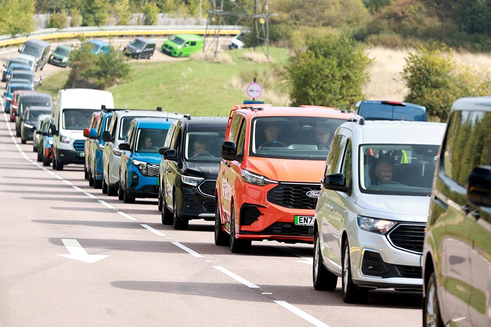 Το εντυπωσιακό κονβόι της Ford σχηματίστηκε στο Τεχνικό Κέντρο της εταιρείας που βρίσκεται στο Dunton του Essex. Εκεί η Ford σχεδιάζει και εξελίσσει τις πιο πρόσφατες γενιές του Transit. Στη συνέχεια, το κονβόι διένυσε μια διαδρομή 46 χλμ. μέχρι το Transit Festival που έλαβε χώρα στο Chelmsford City Racecourse, όπου περισσότεροι από 2.500 ενθουσιώδεις συμμετέχοντες εγγράφηκαν για να λάβουν μέρος όχι μόνο σε παιχνίδια, αλλά και σε ψυχαγωγικές και όχι μόνο δραστηριότητες, οι οποίες αναμένεται να βοηθήσουν τους ιδιοκτήτες μικρών επιχειρήσεων να μεγιστοποιήσουν την παραγωγικότητα των οχημάτων τους, να εμβαθύνουν σε πολύ σημαντικά ζητήματα, όπως η κλοπή εργαλείων, και να μάθουν πώς να χρησιμοποιούν τα μέσα κοινωνικής δικτύωσης για την ανάπτυξη των επιχειρήσεών τους.
