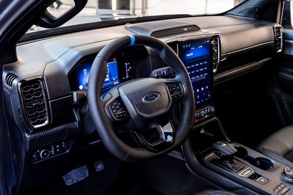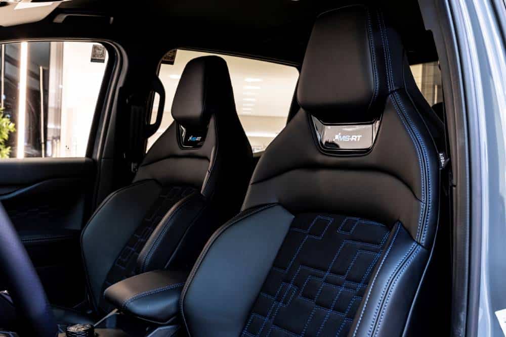 Το χαρακτηριστικό και προηγμένο εσωτερικό του διπλοκάμπινου pick-up Ford διαθέτει στην έκδοση MS-RT μοναδικά νέα μπάκετ καθίσματα με σπορ σχεδίαση, τα οποία παρέχουν βελτιωμένη άνεση και υποστηρίζουν καλύτερα τo σώμα των εμπρός επιβατών. Εξωτερικά, το εμπρός μέρος του νέου Ranger MS-RT αντλεί έμπνευση από τις extreme εκδόσεις του μοντέλου που συμμετέχουν σε αγωνιστικές διοργανώσεις, αποπνέοντας έντονο δυναμισμό χάρη στην κυψελοειδή μάσκα και το ενσωματωμένο splitter. Επίσης, η συνολική σιλουέτα του οχήματος είναι χαμηλωμένη χάρη στο σμιλευμένο σχήμα των πλαϊνών ποδιών, ενώ στο πίσω μέρος ο διαχύτης αέρα βρίσκεται ενσωματωμένος στον χαρακτηριστικής σχεδίασης προφυλακτήρα