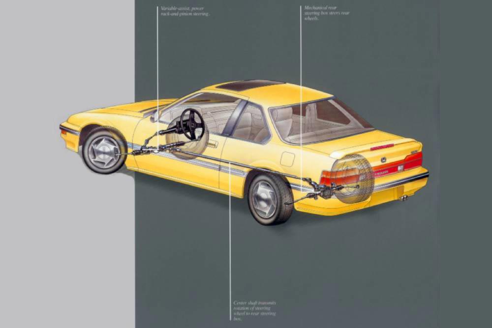 Η Honda ήταν η εταιρία που σύστησε στο ευρύ κοινό την ενεργή συμμετοχή του πίσω άξονα στο «στρίβειν», με την τρίτη γενιά του Prelude. Το ιαπωνικό κουπέ υπήρξε ο πρωτοστάτης της ενεργητικής τετραδιεύθυνσης στα αυτοκίνητα παραγωγής, όπου οι πίσω τροχοί έστριβαν με χρήση μηχανισμού είτε ανάποδα, είτε στην ίδια φορά με τους μπροστινούς. Μέχρι τότε, υπήρχε η παθητική τετραδιεύθυνση. Μια απλοϊκή διάταξη, που επέτρεπε μια μικρή αλλαγή στην γωνία των πίσω τροχών, μέσω των πλευρικών φορτίων και της γεωμετρίας της ανάρτησης.