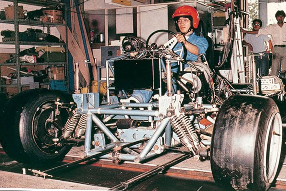 H Honda μάλιστα είχε εξελίξει και μια πρωτότυπη κατασκευή, πάνω στην οποία μπορούσε να δοκιμάζει τον κάθε άξονα ξεχωριστά. Θύμιζε κράμα δυναμόμετρου-διαδρόμου γυμναστικής, με τους τροχούς να περιστρέφονται κανονικά αλλά να μπορούν παράλληλα και να στρίψουν, χάρις στην επίπεδη επιφάνεια που πάταγαν. Δεν ήταν πάνω σε ράουλα, δηλαδή, αν και οι δοκιμαστικοί τροχοί παρέπεμπαν έντονα σε τέτοια