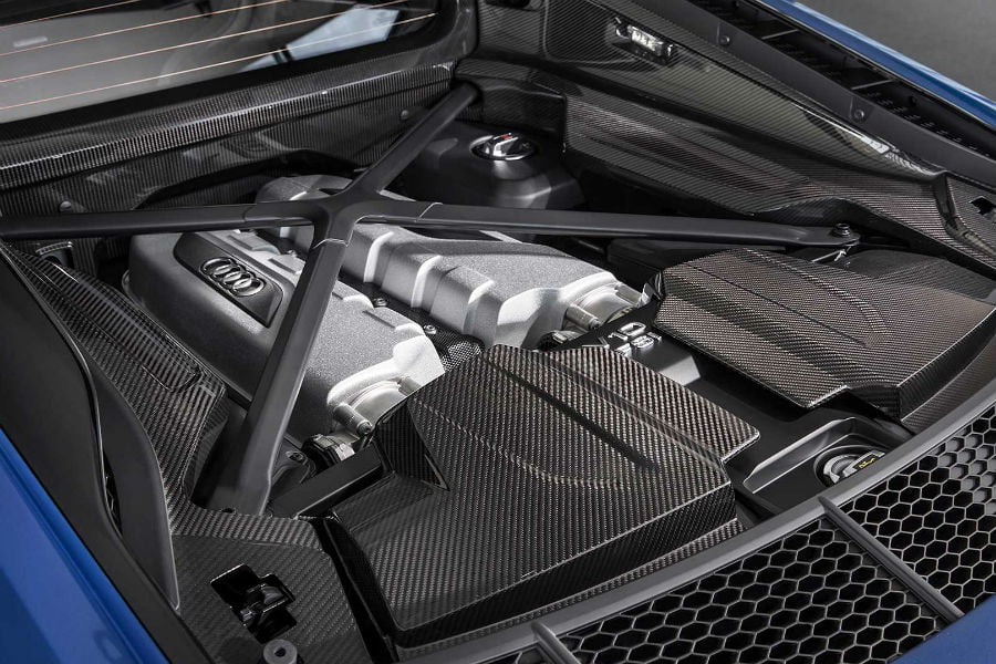 Ας θυμηθούμε όμως ορισμένα χαρακτηριστικά του supercar της Audi. Το ανανεωμένο μοντέλο παρουσιάστηκε τον Οκτώβριο του 2018, ενώ στην κορυφή της γκάμας τοποθετείται το R8 V10 Performance Quattro. O V10 κινητήρας των 5.2 λτ. αποδίδει 620 ίππους στις 8.000 σ.α.λ. και 580 Nm ροπής στις 6.600 σ.α.λ. Σε συνδυασμό με το 7άρι S tronic οι επιδόσεις είναι αναμενόμενα καταιγιστικές, με την επιτάχυνση στο 0-100 χλμ./ώρα να είναι υπόθεση 3,1 δλ. και τη μέγιστη ταχύτητα να φτάνει τα 331 χλμ./ώρα.