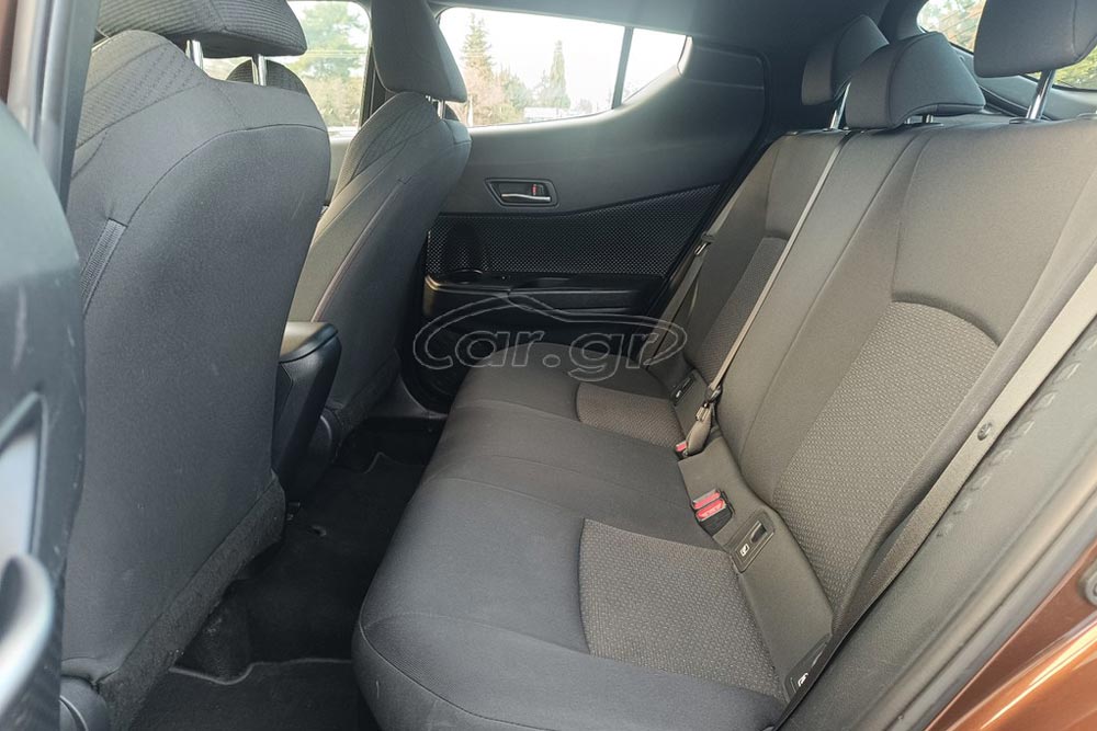 Το παλαιότερο C-HR εφοδιάζονταν αρχικά με το full hybrid μηχανικό σύνολο συνδυαστικής απόδοσης 122 ίππων. Αποτελείται από τον 1.800άρη κινητήρα βενζίνης ισχύος 98 ίππων και 142 Nm ροπής και τον ηλεκτροκινητήρα των 72 ίππων και τα 163 Nm ροπής. Επιταχύνει στο 0-100 χλμ./ώρα σε 11,0 δλ. και φτάνει τα 170 χλμ./ώρα μέγιστης ταχύτητας, καταναλώνει σε μεικτές πραγματικές συνθήκες 5,5 λτ./100 χλμ., ή και λιγότερα όταν τα χιλιόμετρα γίνονται στην πόλη, λόγω του ότι κινείται και αμιγώς ηλεκτρικά. Μειονέκτημα αποτελεί το αισθητό έως ενοχλητικό βουητό του βενζινοκινητήρα όταν ανεβάζει στροφές για πιο γρήγορη επιτάχυνση ή για να φορτίσει η μπαταρία.