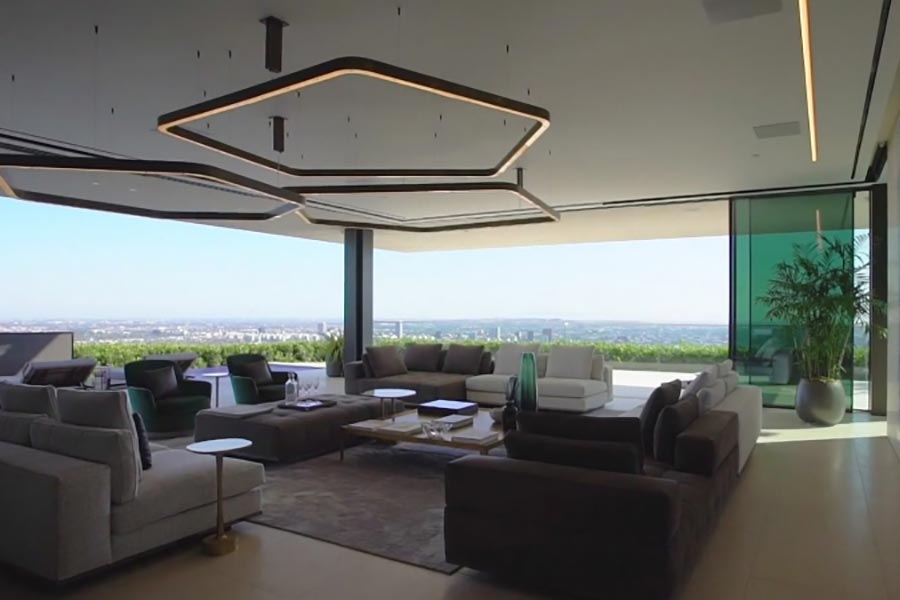 Η βίλα που κατασκευάστηκε το 2018 και βρίσκεται στους πρόποδες του Hollywood διαθέτει κι ένα πολυτελές γκαράζ χωρητικότητας έως και 10 αυτοκινήτων. Μάλιστα ο χώρος φωτογραφήθηκε με μερικά διαμάντια στο γκαράζ, του προηγούμενου κατόχου, όπου μεταξύ άλλων είδαμε Ford GT, μια Lamborghini Centenario, μια Mercedes SLS AMG, μια McLaren 720S Spider, και ένα Dodge Challenger SRT Demon. Η πολυτελής βίλα είναι κατασκευασμένη σύμφωνα με την τελευταία λέξη της αρχιτεκτονικής, με πολυτελή υλικά και ευφάνταστη διακόσμηση. Ξεχωρίζει ο εσωτερικός καταρράκτης, το τεχνολογικά προηγμένο home cinema, σαφέστατα η εξαιρετική θέα αλλά και η τεράστια πισίνα.