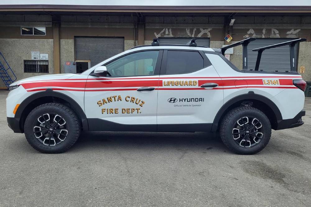 Τη δόξα των Ford F-150, Ranger και Nissan Pick Up που αλώνιζαν στις παραλίες της Καλιφόρνια ζήλεψε το Hyundai Santa Cruz, αναλαμβάνοντας καθήκοντα ναυαγοσώστη στην πόλη που του χάρισε το όνομά της. Η τοπική αυτοδιοίκηση της Santa Cruz (πάντα στην Καλιφόρνια) έλαβε ως δωρεά 4 ομώνυμα και ειδικά μεταποιημένα Hyundai, στη μεγαλύτερη κίνηση του είδους που έχει γίνει από τη Hyundai Motor America. Το συνολικό ύψος της δωρεάς ανέρχεται σε 164.000 δολάρια (153.620 ευρώ), περιλαμβάνοντας την πλήρη προετοιμασία των οχημάτων.