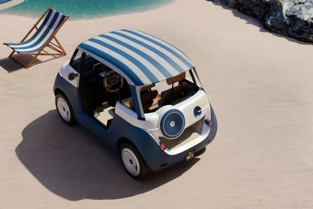 Το «καραβίσιο» Topolino ξεχωρίζει καταρχάς για το ριζικά ανασχεδιασμένο αμάξωμα, που ντύνεται στα γαλανόλευκα. Το μπροστινό μέρος δείχνει πιο μοντέρνο παρά ρετρό, με ανάγλυφο προφυλακτήρα και στρογγυλά LED που θυμίζουν το Fiat 500e. Το ίδιο ισχύει για τους δίσκους στους τροχούς, αλλά και την απουσία θυρών στο προφίλ. Πίσω εντείνονται οι πινελιές θαλαμηγού, με το ημιεκτεθειμένο πορτμπαγκάζ που διαθέτει δάπεδο καλυμμένο με ξύλο . Άλλες «δροσερές» λεπτομέρειες περιλαμβάνουν vintage LED, οροφή σε στυλ καμβά και ένα στρογγυλό στοιχείο που μοιάζει με υποδοχή ρεζέρβας.