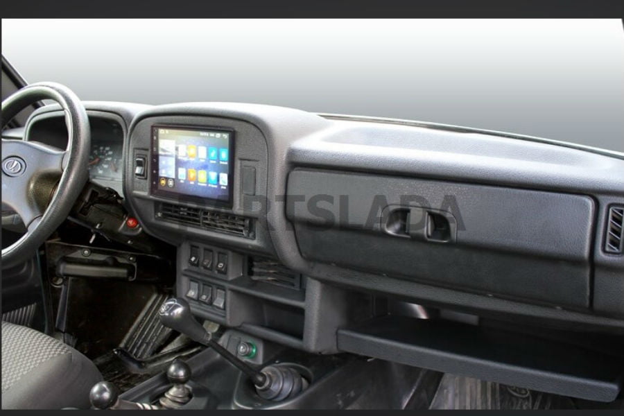 Το site Partslada.com έχει τη λύση, με ένα ολοκληρωμένο σύστημα πολυμέσων που μπορεί να τοποθετηθεί στο ταμπλό του Niva! Προσφέρει τις περισσότερες σύγχρονες δυνατότητες, όπως Bluetooth, σύνδεση με smartphone, αναπαραγωγή μουσικών αρχείων και πραγματοποίηση τηλεφωνικής κλήσης, όμως δεν αποσαφηνίζεται αν διαθέτει λειτουργίες Android Auto και Apple CarPlay. Για να μπορεί να συνδεθεί με smartphone, πάντως, θεωρείται πολύ πιθανό να διαθέτει το πρώτο. Η περιγραφή του ιστότοπου είναι πολύ λιτή και δεν αναφέρει καν τη διάσταση της οθόνης, η οποία δεν πρέπει να υπερβαίνει τις 7 ίντσες. Και πάλι, για τα δεδομένα του Niva μιλάμε για home theater.