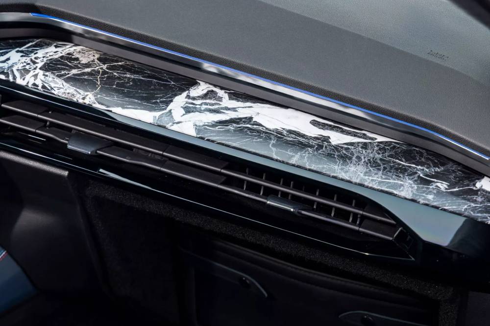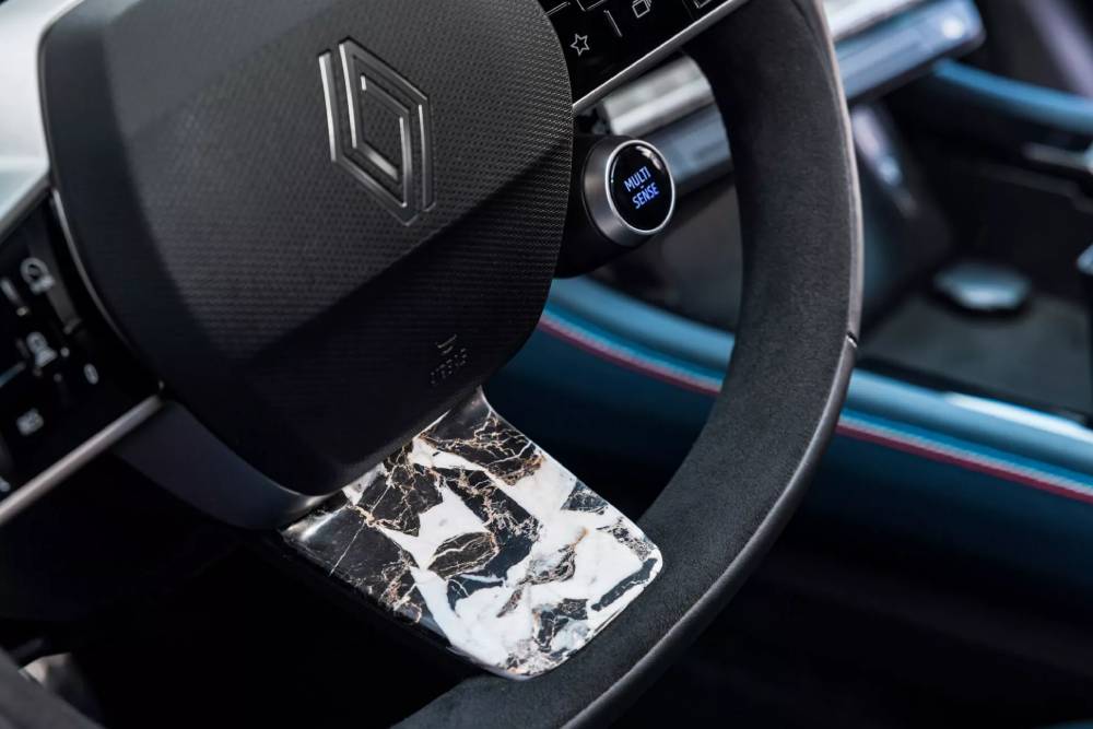Το νέο προεδρικό αυτοκίνητο των Γάλλων έκανε πρεμιέρα στη Μέρα της Βαστίλης, όπου ο Μακρόν το πήγε μια σύντομη βόλτα από το Ελιζέ στην Avenue de Friedland. Το ειδικά σχεδιασμένο Rafale ξεχωρίζει για την τρικολόρ μάσκα, που απεικονίζει τη γαλλική σημαία πέριξ του σήματος της Renault, τα ανάλογα εμβλήματα στα φτερά, το βαθύ μπλε Bleu Présidence χρώμα του αμαξώματος, τις μαύρες 20άρες ζάντες και, φυσικά, τη θωράκιση που διαθέτει, για την προστασία του επικεφαλής της Γαλλίας. Όσον αφορά το εσωτερικό, η Renault θέλησε να αναδείξει αναδεικνύει τα καλύτερα στοιχεία του στυλ, της πολυτέλειας και της κατασκευαστικής δεξιοτεχνίας των Γάλλων. Η νέα πίσω κονσόλα, το τιμόνι και το ταμπλό του μοναδικού Rafale καλύπτονται επικαλυφθεί με μαύρο μάρμαρο, φτιαγμένο στα Πυρηναία, ενώ τα πίσω χειριστήρια αποτελούνται από σκούρο ξύλο οξιάς.