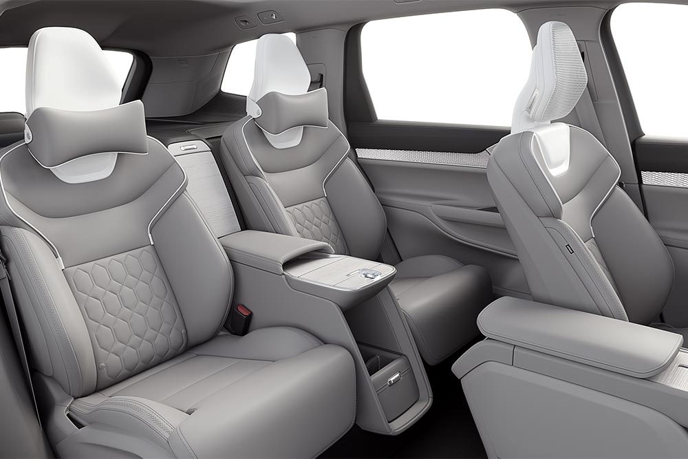 Μέσα στην καμπίνα, η οποία είναι από τις πιο ήσυχες στην κατηγορία, το EX90 περιλαμβάνει νέα προηγμένα υλικά που υπογραμμίζουν τη μοναδική προσέγγιση της Volvo Cars στη σύγχρονη πολυτέλεια. Το Nordico, για παράδειγμα, είναι μία επένδυση χωρίς δέρμα, με κομψή εμφάνιση, φτιαγμένη από ανακυκλωμένα και βιολογικής προέλευσης υλικά από δάση της Σουηδίας και της Φινλανδίας. Η προηγμένη τεχνολογία LED στο εσωτερικό, που αναπαράγει ένα φωτεινό φάσμα πολύ κοντά στο φως του ήλιου, καθώς και ο ξύλινος διάκοσμος με οπίσθιο φωτισμό συμβάλλουν στην ατμόσφαιρα της καμπίνας. Χάρη στην πραγματικά επταθέσια διάταξη του εσωτερικού του, το EX90 επιδεικνύει ένα σπάνιο πλεονέκτημα για την κατηγορία του: άπλετο χώρο αποσκευών. Με όλα τα καθίσματα ανεπτυγμένα, διαθέτει ικανότητα αποθήκευσης έως και 324 λίτρων πίσω από την τρίτη σειρά. Με τα καθίσματα της τρίτης σειράς αναδιπλωμένα, η αποθηκευτική ικανότητά του αυξάνεται στα 697 λίτρα, τιμή που το ξεχωρίζει από τους ανταγωνιστές του.