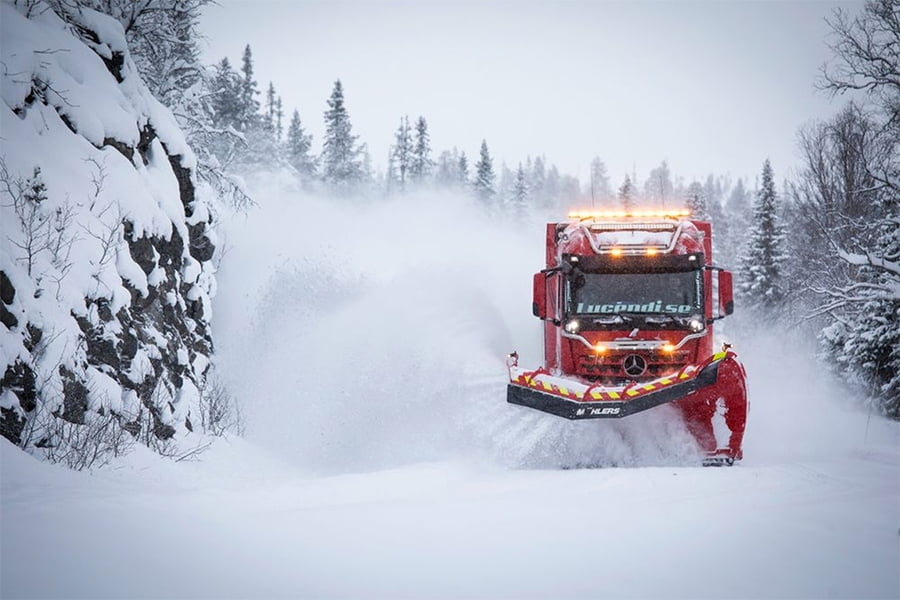 Η μοναδική Mercedes είναι επίσης ένα αξιοθέατο για τους Σουηδούς, οι οποίοι είναι συνηθισμένοι στην θέα των εκχιονιστικών μηχανημάτων. Το εν λόγω όχημα το χειρίζεται συνήθως ο Jonas Vykander, με χιλιάδες χιλιόμετρα εκχιονισμού δρόμων στο ενεργητικό του (έως και 1.000 χλμ. οδοστρώματος σε μια ημέρα). Ο κινητήρας παράγει 580 ίππους, τα ελαστικά σε κάθε άξονα είναι χειμερινά, ενώ το προσωπικό φροντίζει να υπάρχουν κι αλυσίδες, ώστε να μην κολλήσει πουθενά.