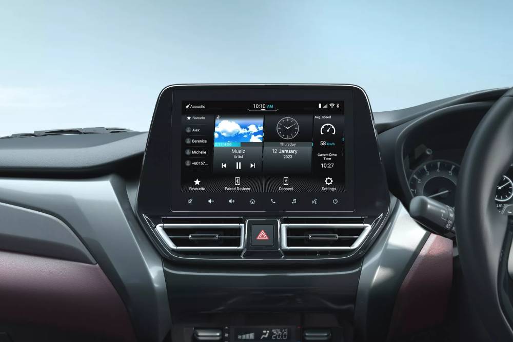 Ο λόγος για το compact SUV Fronx. Ένα μοντέλο κάτω των 4 μέτρων (μήκος 3.995 χλστ., πλάτος 1.765 χλστ., ύψος 1.550 χλστ. και μεταξόνιο 2.520 χλστ), που βασίζεται στο Baleno και εμφανισιακά, δεν το κάνεις με τίποτα ότι προορίζεται για την αγορά της Ινδίας. Κάλλιστα θα μπορούσε να διατίθεται στην Ευρώπη (και πολύ πιθανό να γίνει, στο εγγύς μέλλον), με τα λεπτά LED ημέρας μπροστά, το χρώμιο στη μάσκα, τον ογκώδη προφυλακτήρα, τα φουσκωμένα φτερά, την ευμεγέθη ποδιά και την πολύ εντυπωσιακή διάταξη με τα ενιαία φωτιστικά σώματα πίσω, να κλέβουν τις εντυπώσεις. Στο εσωτερικό το ταμπλό μοιάζει με του Baleno, αλλά εμπλουτίζεται με ματ φινίρισμα και απομίμηση αλουμινίου. Η οθόνη αφής των 9 ιντσών στην κορυφή είναι ο πρωταγωνιστής, προσφέροντας έλεγχο στο σύστημα πολυμέσων και λειτουργίες συνδεσιμότητας Apple CarPlay και Android Auto.
