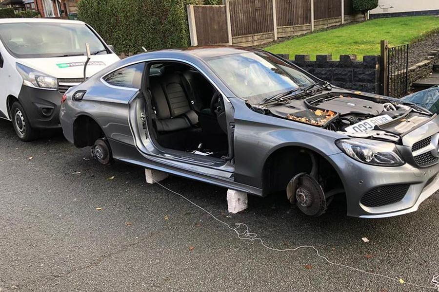 Ο εν λόγω κύριος πάρκαρε τη μεσαία κουπέ Mercedes-Benz έξω από το σπίτι του, νιώθοντας ασφαλής, αφού διαθέτει σκύλο φύλαξης και κάμερες παρακολούθησης. Ωστόσο, τίποτα από αυτά δεν πτόησε την ομάδα των εκπαιδευμένων κλεφτών να κάνει φύλο και φτερό το πολυτελές γερμανικό κουπέ, μέσα σε λίγες ώρες.