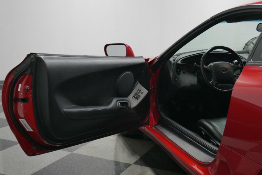 Οι Supra 4ης γενιάς είναι από τα πιο ακριβά μεταχειρισμένα, ξεπερνώντας στις περισσότερες των περιπτώσεων κατά πολύ το κοστολόγιο της σημερινής. Ας δούμε την κατακόκκινη (Renaissance Red) της Streetside Classics, που είναι και επετειακή έκδοση για τα 15 χρόνια του μοντέλου. Μας έρχεται από το 1993 και έχει διανύσει μόλις 58.704 χλμ. Για την κατάσταση, βλέπετε. Αστραφτερή, αψεγάδιαστη, με τις ζάντες ακόμα ακόμα να μην εμφανίζουν ίχνος γρατζουνιάς. Σημειωτέον, είναι οι πρώτες τοποθέτησης. Τα ελαστικά 235/45 εμπρός και 255/40 πίσω έχουν αλλαχτεί (αυτό έλειπε).