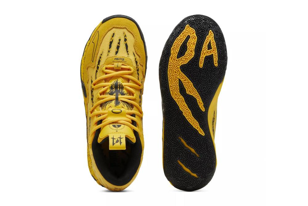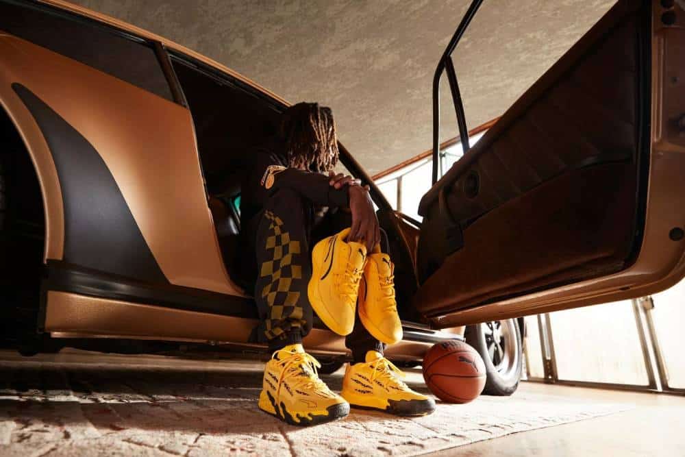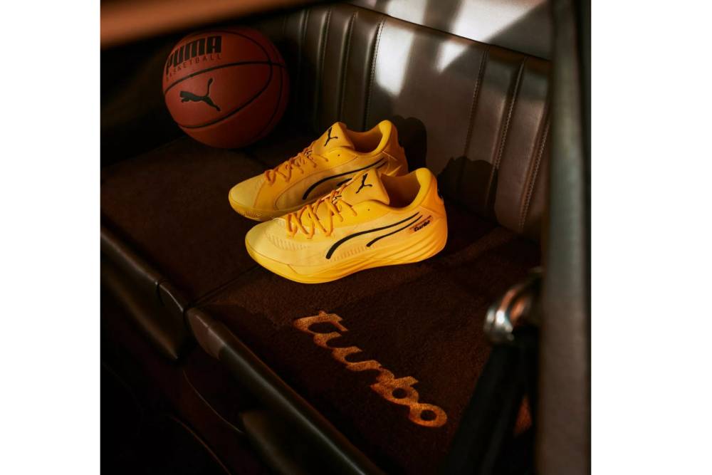 Το ένα μοντέλο παπουτσιού πρόκειται για το MB.03, που φοράει και ο superstar των Σάρλοτ Χόρνετς, ΛαΜέλο Μπολ. Ακριβώς τα ίδια με του γκάρντ των «Σφηκών», αλλά με τη διαφορά ότι εδώ βάφονται σε κιτρινόμαυρο συνδυασμό. Οι «νυχιές» στο πλάι, μαζί με τα λογότυπα «Porsche» και «Turbo» τραβούν το μάτι σαν μαγνήτης, ενώ τα κορδόνια είναι είτε κίτρινα είτε μαύρα. Το έτερο παπουτσάκι είναι τα γνωστά Nitro, επίσης σε κιτρινόμαυρο μοτίβο και το «Porsche Turbo» σε περίοπτη θέση. Από πού προκύπτει η σύνδεση με την υπερτροφοδοτούμενη 911 είναι δύσκολο να γίνει αντιληπτό, καθώς στις φωτογραφίες εμφανίζεται μια χρυσαφί (όχι κίτρινη) 930.