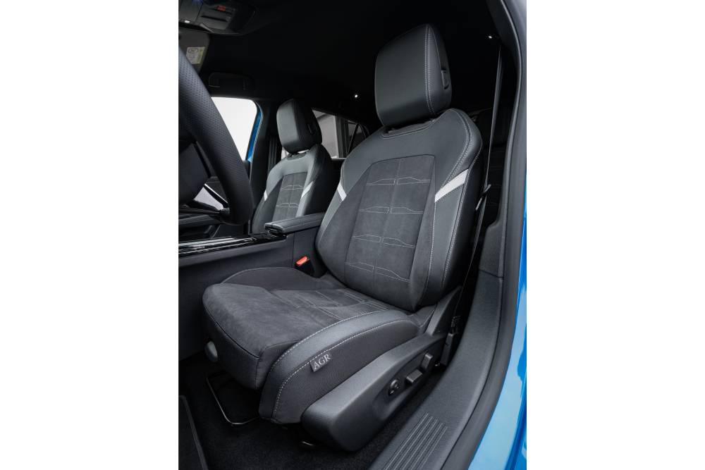 Το ίδιο ισχύει και για τα εργονομικά ενεργά sport καθίσματα του Astra, που επίσης είναι πιστοποιημένα από τον οργανισμό AGR. Οι επενδύσεις από το 100% ανακυκλωμένο και ανακυκλώσιμο υλικό ReNewKnit προσφέρουν υψηλής ποιότητας εμφάνιση σουέτ, μειώνοντας ταυτόχρονα το αποτύπωμα CO₂. Για περισσότερη πολυτέλεια, είναι διαθέσιμη η επένδυση από δέρμα Nappa στο Grandland, σε συνδυασμό με το κορυφαίο Intelli-Seat Pro. Η Opel έχει εξελίξει περαιτέρω αυτό το εργονομικό κάθισμα και το έχει εξοπλίσει με πρόσθετα χαρακτηριστικά άνεσης, όπως τα ρυθμιζόμενα πλευρικά μαξιλάρια, τα διάφορα προγράμματα μασάζ, η λειτουργία αερισμού και πολλές ακόμη δυνατότητες. Το Intelli-Seat Pro αποτελεί την αιχμή του δόρατος στην κατηγορία άνεσης καθισμάτων της Opel.