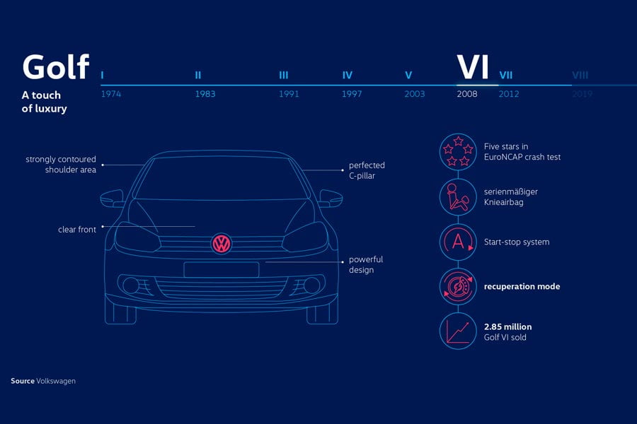 Το έκτης γενιάς VW Golf το οποίο κατασκευάστηκε μεταξύ 2008-2012 σε 2,85 εκατομμύρια αντίτυπα, ανέβασε ακόμα πιο ψηλά τον πήχη στη μικρομεσαία κατηγορία σε πολλούς τομείς, όπως σε ποιότητα, ασφάλεια, κινητήρες και τεχνολογία.