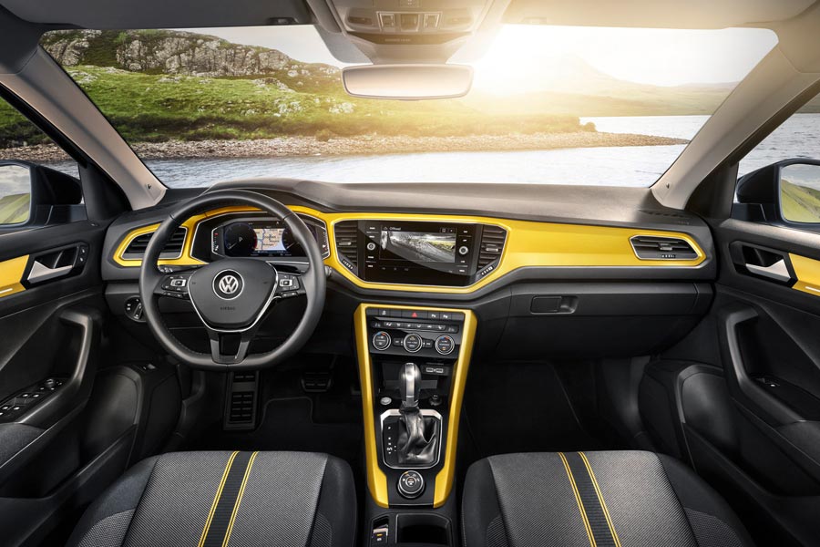 Αντίστοιχα και το εσωτερικό του VW T-Roc εναρμονίζεται απόλυτα με την εξωτερική εμφάνιση για να προσφέρει μια στιβαρή SUV αίσθηση, δυνατότητες εξατομίκευσης του εσωτερικού και μοντέρνες επιφάνειες. Τα διακοσμητικά πάνελ στο ταμπλό, στην κονσόλα και στις πόρτες (επτά χρώματα στο σύνολο) ενισχύουν τον ευχάριστο διάκοσμο μαζί με τα νίκελ σε διάφορα σημεία της καμπίνας. Ο πλήρως ψηφιακός πίνακας οργάνων Active Info Display σε συνδυασμό με το σύστημα Infotainment συνθέτουν ένα προηγμένο, ψηφιακό, διαδραστικό ταμπλό. Πέρα όμως από το μοντέρνο σχεδιασμό, το εσωτερικό του T-Roc διακρίνεται για την εργονομία του και τους πολύ άνετους χώρους που προσφέρει για τους επιβάτες και τις αποσκευές (445 λτ.). Πρόσθετα, την πρακτικότητα ενισχύουν περεταίρω οι πολλές θήκες για μικροαντικείμενα και ποτήρια.