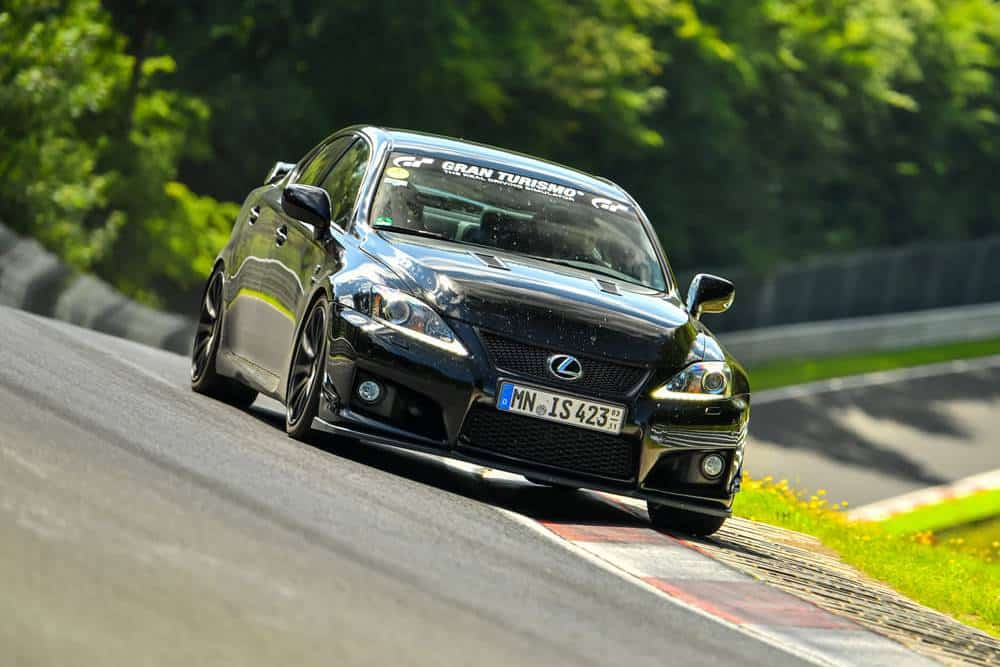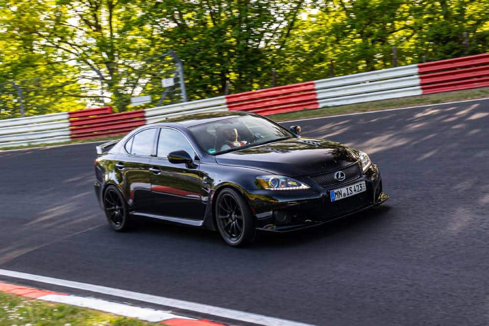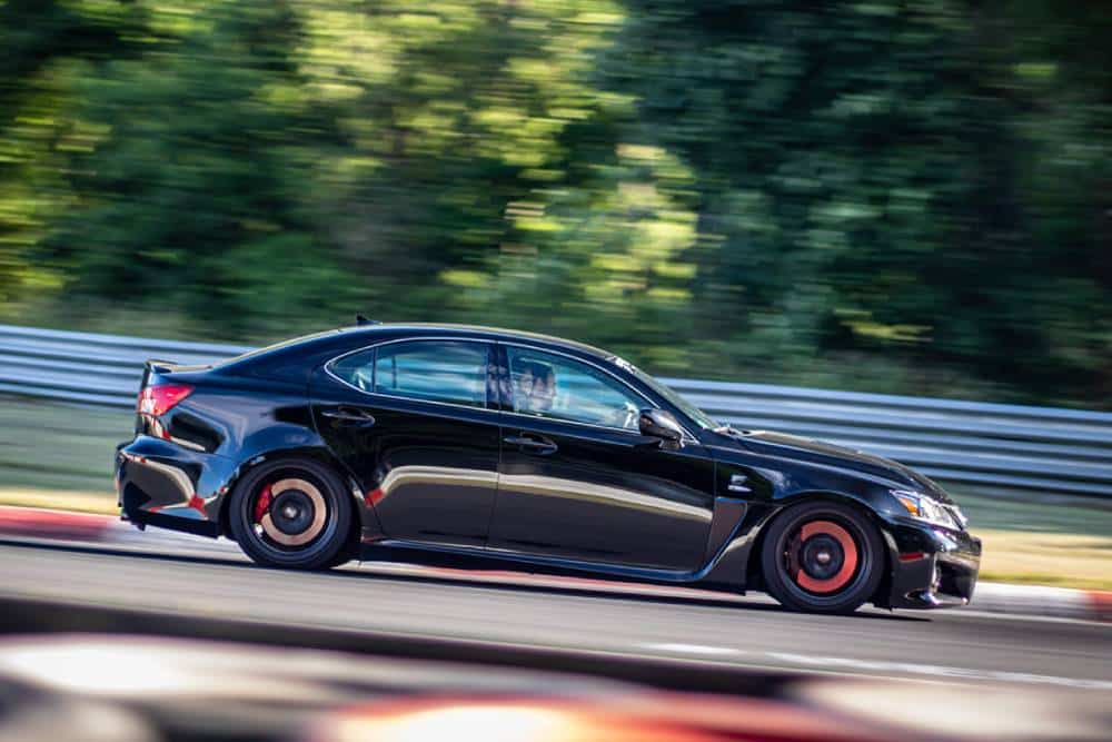 Το μαύρο που βλέπουμε φιλοξενεί αρκετές βελτιώσεις από την LFGarage Motorsport, για να το κάνουν πιο μάχιμο στην πίστα. Ρυθμιζόμενη ανάρτηση της KW, φρένα της Endless, απουσία πίσω καθισμάτων, ημισλίκ ελαστικά και νέες ζάντες της OZ. Το IS F μπαίνει πολύ συχνά και στην πιο επικίνδυνη του κόσμου, δηλαδή το Nurburgring. Κι ας οδεύει ολοταχώς για τις 440.000 χλμ.! Το οδόμετρο ανέγραφε 439.540 χλμ. όταν το αυτοκίνητο μπήκε στο Nordschleiffe, δίχως να υπάρχει το παραμικρό πρόβλημα στο να κινηθεί οριακά στα 21 χλμ. της «Πράσινης Κόλασης». Όσο μπόρεσε δηλαδή, καθώς η κίνηση ήταν αυξημένη και σε ένα σημείο σταμάτησε η κυκλοφορία λόγω ατυχήματος. Πλέον σίγουρα έχει ξεπεράσει κατά πολύ τις 440.000 χλμ., δεν αποκλείεται να έχει φτάσει και τις 445.000 χλμ.