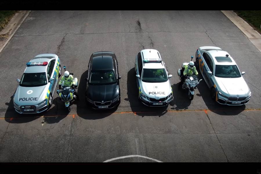 Πριν από λίγο καιρό παρέλαβαν τα νέα τους περιπολικά και στην Τσεχία, όπου μη φανταστείτε ότι είναι τίποτα απλές εκδόσεις. Συγκεκριμένα παρέλαβαν BMW 745Le 3.0 xDrive 394 PS και Skoda Octavia Combi 2.0 TSI 4×4 DSG 190 PS. Μαζί με τα παλαιότερα Audi S6 4.0 TFSI quattro 450 PS, Skoda Superb 2.0 TSI 4×4 DSG 278 PS και τις μοτοσικλέτες BMW RT 1200 124 PS και Yamaha FJR 1300 145 PS, τα βάζουν να κοντραριστούν στην ευθεία. Σίγουρα τέτοιο θέαμα με περιπολικά σπανίζει, αφού βλέπουμε πολιτικά αυτοκίνητα να στήνονται σε ευθείες.
