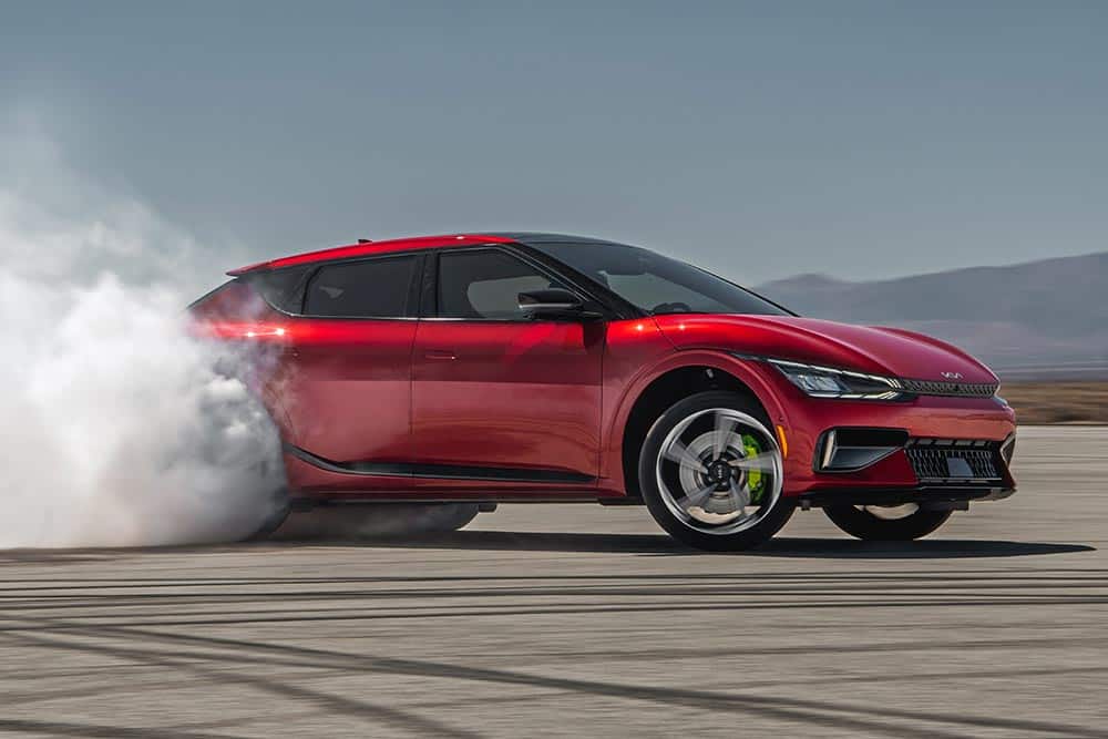 Στην κορυφή της γκάμας τοποθετείται το πολύ συναρπαστικό EV6 GT, με τους δύο ηλεκτροκινητήρες, συνολικής ισχύος 585 ίππων και 740 Nm ροπής. Απόδοση που «εκτοξεύει» το αμάξωμα των 2.200 κιλών και 4,7 μ. μήκους στα 0-100 χλμ./ώρα σε 3,5 δλ. και με τη μέγιστη ταχύτητα να φτάνει τα 260 χλμ./ώρα. Επίσης, η μπαταρία των 77,4 kWh εξασφαλίζει αυτονομία 424 χλμ. σε μεικτές συνθήκες και 546 χλμ. στην πόλη, με κατανάλωση ενέργειας 20,6 kWh/100 χλμ. και 16,0 kWh/100 χλμ. αντίστοιχα.