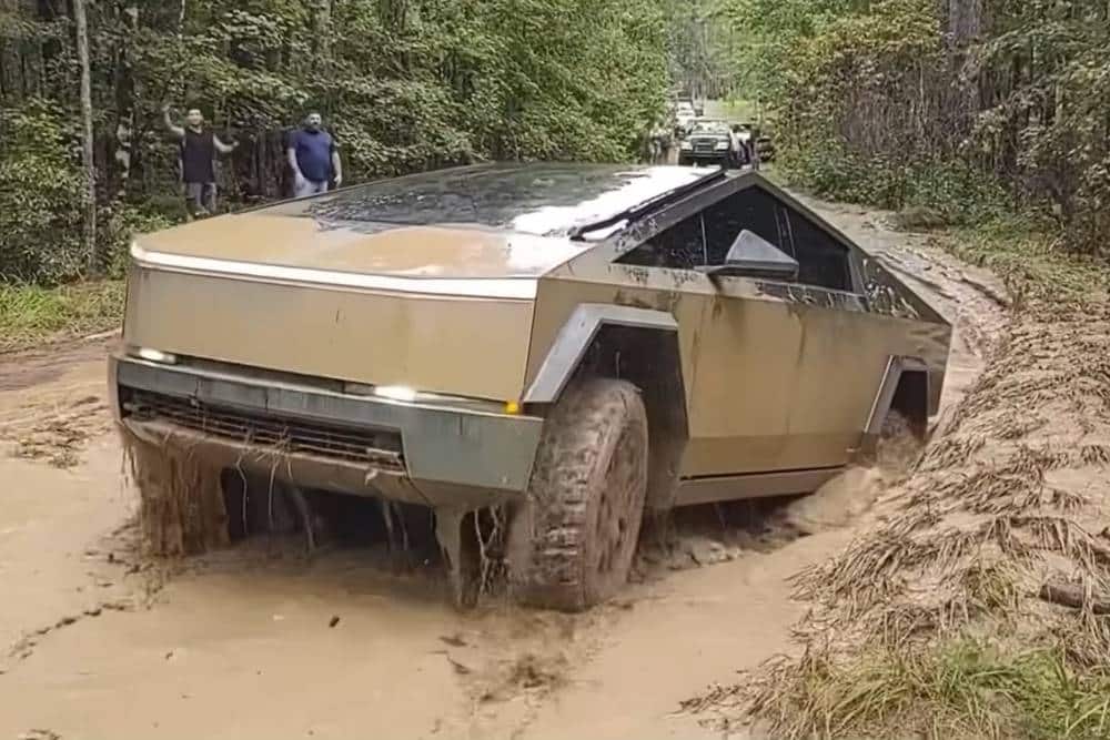 Το Cybertruck όχι μόνο δεν κόλλησε στις λάσπες, αλλά βγήκε θριαμβευτικά από το νερόλακκο. Το καλύτερο; Ακριβώς μετά το Tesla, πήγε να περάσει ένα βελτιωμένο Toyota Tacoma. Προσπάθεια που στέφθηκε από αποτυχία, δίνοντας έξτρα πόντους περηφάνιας στο βασανισμένο κορμί του Cybertruck, το οποίο έβγαλε αυτό ένα άλλο όχημα από τη δύσκολη θέση. Έτσι, για αλλαγή.