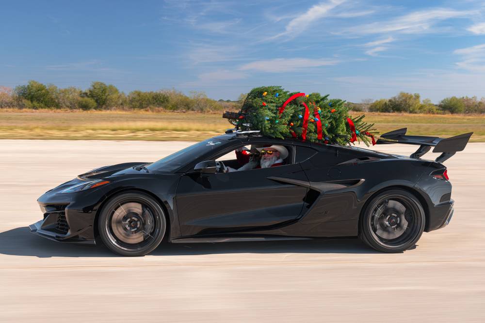 Το πνεύμα των Χριστουγέννων, ή καλύτερα ο ίδιος ο Άγιος Βασίλης (που μοιάζει σαν να περνάει οντισιόν για τους ZZ Top), επισκέφτηκαν τις εγκαταστάσεις της Hennessey και δανείστηκαν το εορταστικό δέντρο, μαζί με μια Chevrolet Corvette ZR1 και τα 1.079 άλογά της!