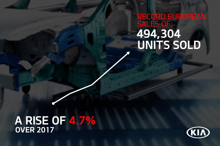 Η Kia Motors πέτυχε νέο ρεκόρ πωλήσεων το 2018 στην Ευρώπη (494.304 μονάδες) καθώς και τη 10η συνεχή χρονιά ανάπτυξής της, σύμφωνα με τα νέα δεδομένα που δόθηκαν στη δημοσιότητα από την ACEA (European Automobile Manufacturers’ Association).