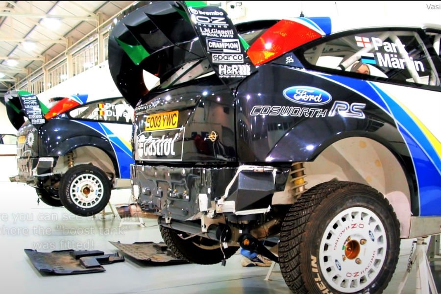 Το πρώτο, «φτερωτό» Focus WRC διέθετε μια πατέντα, που θα μπορούσε να αλλάξει για τα καλά τις ισορροπίες στο WRC. Κάτω από τον πίσω προφυλακτήρα, υπήρχε ένα ρεζερβουάρ αέρα! Η χωρητικότητα έφτανε τα 45 λίτρα και το πάχος της δεξαμενής τιτανίου, τα 2 χλστ. Το ρεζερβουάρ αυτό, συνδέονταν με την πολλαπλή εισαγωγής μέσω ενός 4μετρου σωλήνα, διαμέτρου 30 χλστ. Ποια ήταν η χρησιμότητά του;
