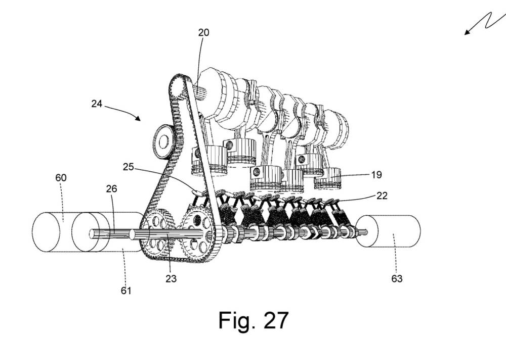 Η αποκάλυψη έρχεται από το Espacenet, που αλίευσε μια πατέντα της Ferrari για κινητήρα εσωτερικής καύσης με καύσιμο το υδρογόνο. Αυτός είναι ο τίτλος του εγγράφου, με την ανάλυσή του αφενός να αποκαλύπτει πως πρόκειται για εξακύλινδρο σύνολο, αφετέρου πως τοποθετείται ανάποδα! Για λόγους χωροταξίας και αεροδυναμικής, οι μηχανικοί του Μαρανέλο κυριολεκτικά φέρνουν τα πάνω-κάτω και βάζουν τον κινητήρα ανεστραμμένα – με τις πιστονιές, δηλαδή, να «βαράνε» προς τα κάτω!