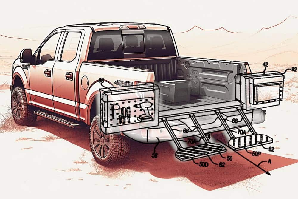 Το «Μπλε Οβάλ» κατέθεσε πατέντα στο Γερμανικό Γραφείο Ευρεσιτεχνιών, σύμφωνα με την οποία η πόρτα της καρότσας και ο χώρος φόρτωσης αποκτούν αυξημένο ρόλο στην πολυχρηστικότητα του pick up, βοηθώντας ενεργά στην φορτοεκφόρτωση και ασφάλιση των αντικειμένων. Όπως δείχνουν τα σχέδια, η Ford σκοπεύει να αλλάξει ριζικά τόσο το πώς ανοίγει η πόρτα, όσο και το πώς χρησιμοποιείται. Καταρχάς, τέλος η μονοκόμματη διάταξη και το κλασικό άνοιγμα προς τα κάτω. Η καρότσα του μέλλοντος θα είναι δίφυλλη, ανοίγοντας σε δυο κομμάτια προς τα πλάγια. Διαμόρφωση που θα τη βοηθήσει να λειτουργεί και ως αποθηκευτικός χώρος, με το κάθε φύλλο να λειτουργεί σαν μικρό ντουλαπάκι εργαλείων. Ήδη η Ford εφαρμόζει κάτι ανάλογο με τα πλαϊνά του εσωτερικού της καρότσας, συνεπώς το επόμενο βήμα είναι η έξτρα λειτουργικότητα από την πόρτα. Και δεν σταματά εδώ.