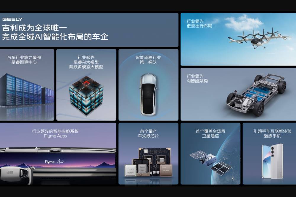 Η Geely παρουσίασε το πρωτοποριακό της σύστημα τεχνολογίας «Ολοκληρωμένης Τεχνητής Νοημοσύνης για Έξυπνα Οχήματα». Μια τεχνολογία βασισμένη σε ένα λειτουργικό σύστημα εγγενές στην τεχνητή νοημοσύνη (AI-native OS), που συνδέεται με ένα έξυπνο οικοσύστημα στον εναέριο, διαστημικό και επίγειο χώρο.