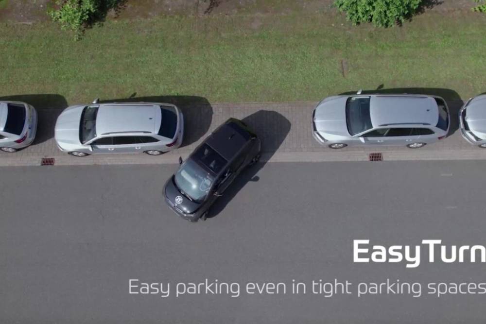 To EasyTurn αποτελείται από έναν έξτρα σύνδεσμο σε κάθε τροχό, που συνδέεται με τα ακραξόνια και απομονώνει τα ψαλίδια της ανάρτησης. Εκεί που σε μια κανονική διάταξη τα ακραξόνια συνδέουν την κρεμαγέρα με τα κάτω ψαλίδια, στο EasyTurn η σύνδεση αυτή πραγματοποιείται με τον έξτρα βραχίονα. Με αυτή την απλή, αλλά συνάμα, πανέξυπνη διαρρύθμιση, μειώνεται το μήκος των αξόνων και αυξάνεται κατακόρυφα η δυνατότητα μέγιστου στριψίματος των τροχών, από τις 35 μοίρες (που συναντάμε στη συντριπτική πλειοψηφία των συστημάτων διεύθυνσης) στις 80! Πάνω από 100% αύξηση στη μέγιστη γωνία άρθρωσης, δηλαδή, με ό,τι ευεργετικές επιπτώσεις αυτό επιφέρει στην ευελιξία και τον κύκλο στροφής του οχήματος.
