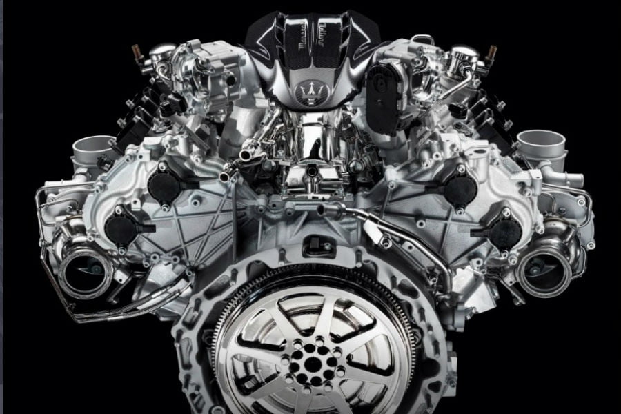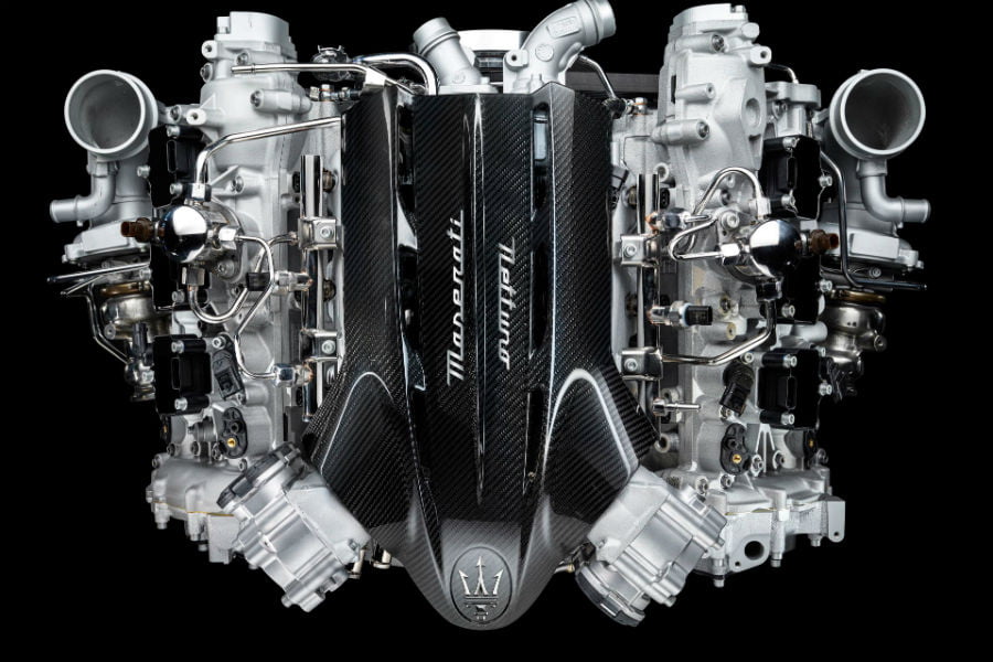 O 3.0 V6 twinturbo Nettuno (Ποσειδώνας) παράγει 630 ίππους στις 7.500 σ.α.λ. και 730 Nm στις 3.000-5.500 σ.α.λ., με την ειδική απόδοση να φτάνει τους 210 ίππους/λίτρο και τον κόφτη να βρίσκεται στις 8.000 σ.α.λ. Η περιεχόμενη γωνία μεταξύ των δυο πλευρών του V είναι 90 μοίρες, η συμπίεση ανέρχεται στο 11:1, η σχέση διαμέτρου x διαδρομής ορίζεται στα 88 x 82 χλστ. (υπερτετράγωνη διάταξη δηλαδή, εξ ου και η όρεξη για στροφάρισμα), η πίεση ψεκασμού φτάνει τα 350 bar και το βάρος της όλης κατασκευής περιορίζεται σε λιγότερο από 220 κιλά. Εντυπωσιακά χαρακτηριστικά, αν μη τι άλλο. Ωστόσο, μία συγκεκριμένη τεχνολογία αποτελεί highlight και πρωτιά για κινητήρα αυτοκινήτου παραγωγής.