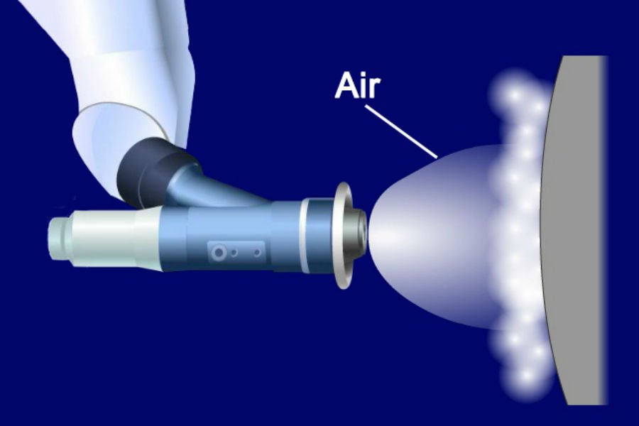 Οι συμβατικοί εγχυτήρες, κάνουν αυτό ακριβώς: εγχύουν το χρώμα. Τα σωματίδια ψεκάζονται μέσα από ένα ακροφύσιο με άτακτο τρόπο, με τη διασπορά να αναλαμβάνει την επικάθισή τους στα πάνελ. Πολλά εξ αυτών, λόγω της δύναμης του αέρα που χρησιμοποιείται, εξοστρακίζονται πάνω στο αμάξωμα και πάνε χαμένα, απαιτώντας τη χρησιμοποίηση περισσότερου υλικού για να «πιάσει». Κάτι που οδηγεί τόσο σε αύξηση του κόστους, όσο και σε περισσότερες εκπομπές ρύπων, ενώ απαιτείται ιδιαίτερη προσοχή στο βαφείο ώστε να υπάρχει ομοιομορφία στο τελικό αποτέλεσμα.